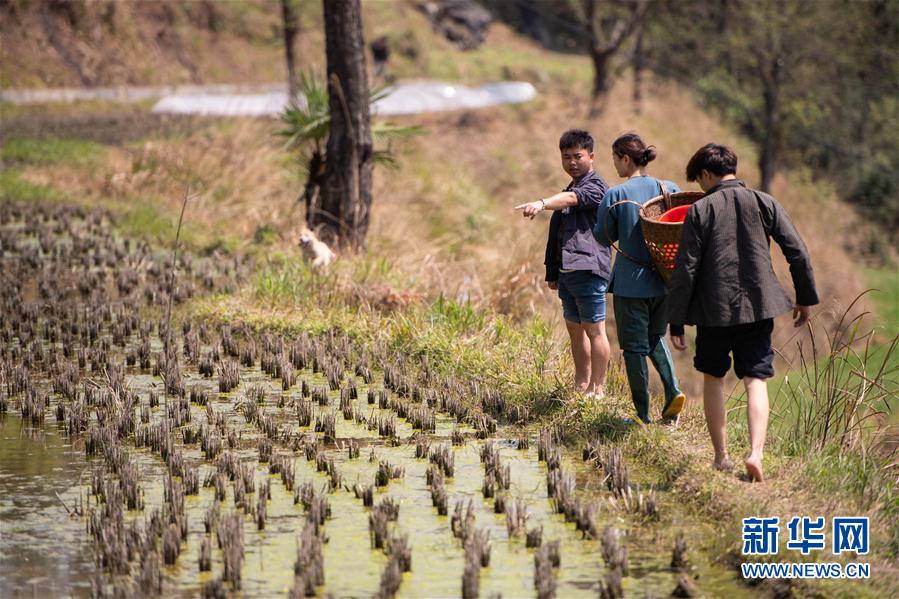 4月9日,在湘西十八洞村,施志春(左)和另外两个返乡大学生寻找田螺。 湖南湘西土家族苗族自治州花垣县十八洞村位于武陵山脉腹地,施志春是土生土长的十八洞村人。2017年研究生毕业后,施志春回到了家乡教授英语,是村里首位返乡工作的硕士研究生。 近年来,他积极参与家乡建设,和另外两个返乡大学生制作视频宣传家乡,帮助村民直播卖货,把十八洞村的特产卖得更远。施志春说,他还想考博士研究生,为服务家乡贡献更大的力量。 新华社发(陈思汗摄)