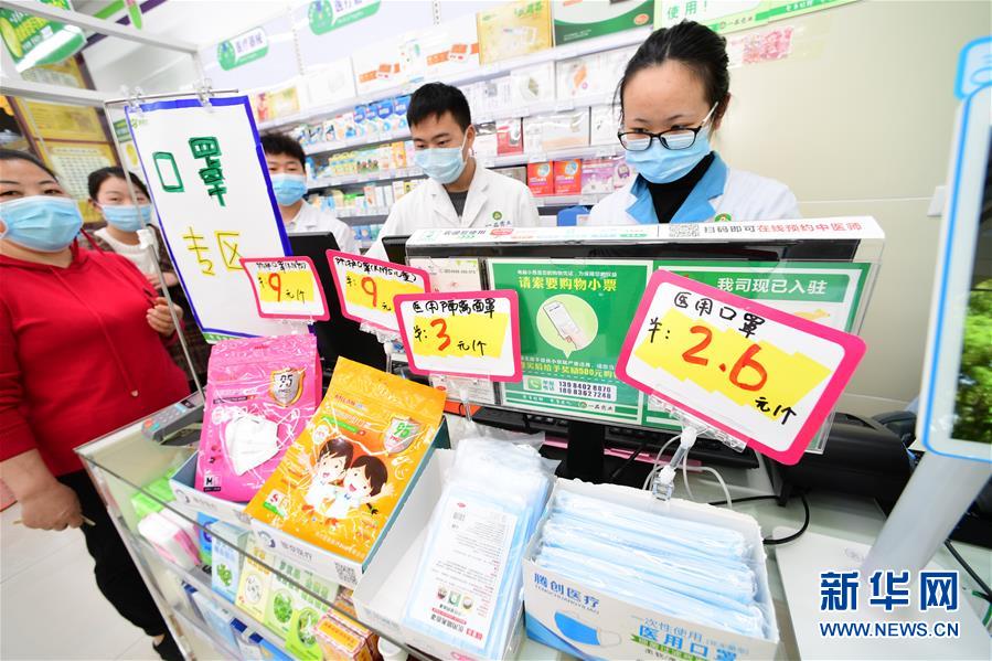 这是4月14日在贵阳市云岩区一家药店拍摄的口罩。 4月以来,贵阳市各药店口罩供应充足,口罩价格趋于平稳,规格、类型也较为齐全。 新华社记者 杨楹 摄