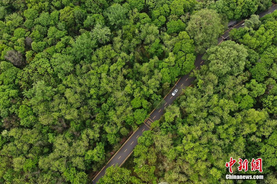 4月22日,车辆行驶在南京紫金山绿意盎然的道路上。当日是世界地球日,今年的宣传主题为“珍爱地球 人与自然和谐共生”。中新社记者 泱波 摄