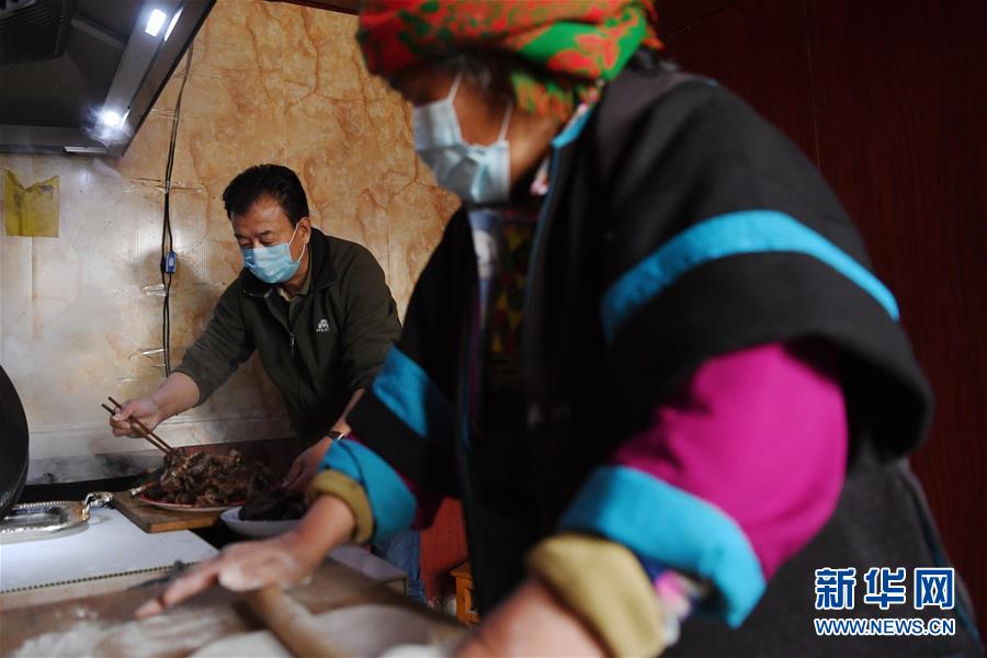 勒阿村驻村第一书记张金利(左)帮着村民屠鲁列一起做午饭(4月21日摄)。 新华社记者 陈斌 摄