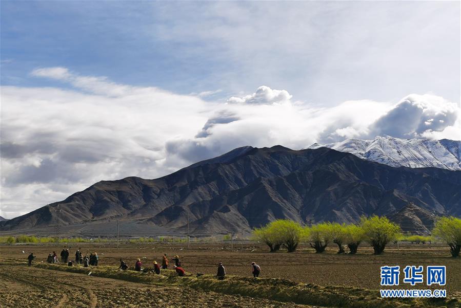 5月4日,在日喀则市白朗县,农民在田间劳作。 西藏自治区日喀则市位于雅鲁藏布江及其主要支流年楚河的汇流处河谷地带。这里日照充足,农业发达,被称为“西藏的粮仓”。时下,在日喀则市白朗县、江孜县等地,广大农民抢抓农时开展春耕工作,呈现一派忙碌的播种图景。 新华社记者 沈虹冰 摄