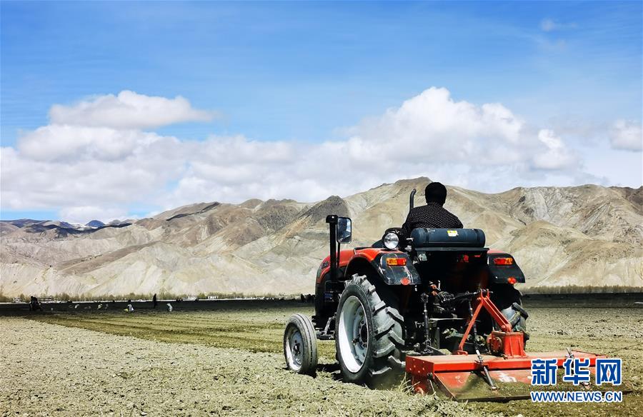 5月4日,日喀则市江孜县紫金乡32岁的农民旦增驾驶拖拉机耕地。旦增去年花4万多元购置了东方红300型拖拉机。他说,今年家里20多亩耕地完成春耕只要两周时间。 西藏自治区日喀则市位于雅鲁藏布江及其主要支流年楚河的汇流处河谷地带。这里日照充足,农业发达,被称为“西藏的粮仓”。时下,在日喀则市白朗县、江孜县等地,广大农民抢抓农时开展春耕工作,呈现一派忙碌的播种图景。 新华社记者 沈虹冰 摄