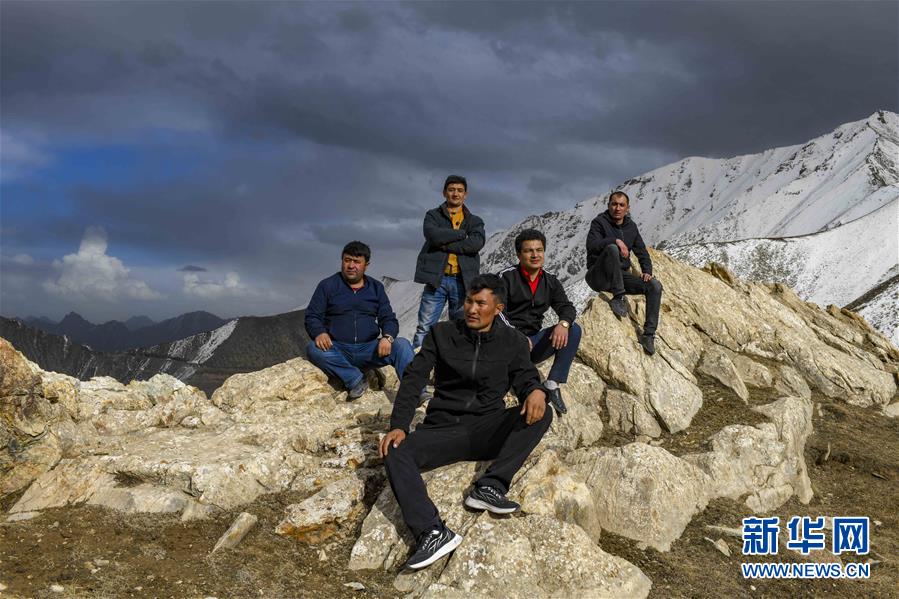 翻越雪山达坂后,参与2020年全民体检服务的部分西合休乡卫生院医护人员在山中休息时合影(5月2日摄)。新华社记者 胡虎虎 摄