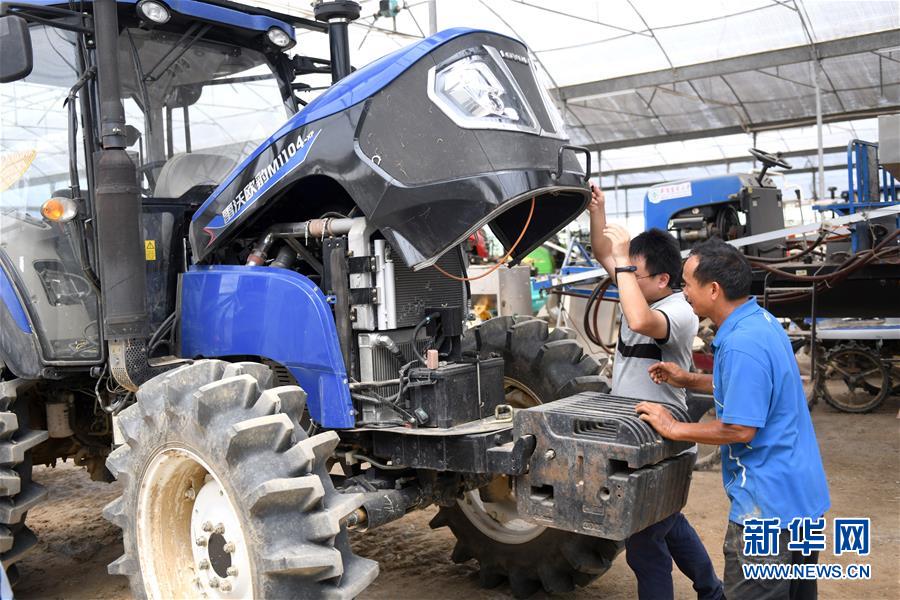 5月9日,工作人员在对无人驾驶旱直播机进行作业前检查。 当日,一次无人播种作业在广州市增城区的华南农业大学教学科研基地里展开。 上午9点20分,一台无人驾驶旱直播机从基地的机库里缓缓驶出大门,出门右转,数十米后左转,直行100多米后再右转,越过一片土地后,进入计划播种的14亩土地中,开始进行丝苗米播种作业。这台播种机用了1小时25分钟、来回走了32圈完成播种作业,随后驶回机库,停到出发时的位置上。 这是中国工程院院士罗锡文及其团队的无人农场项目一次播种示范。据介绍,无人农场包括智能化耕整、播种、田间管理和收获四个环节,是信息技术、智能农机和农艺技术高度结合的生产方式。 新华社记者 卢汉欣 摄