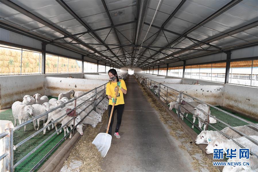 在位于南疆的于田县希吾勒乡,一名饲养员在天津津垦牧业集团有限公司多胎肉羊养殖总场工作(5月20日摄)。 新华社记者 沙达提 摄