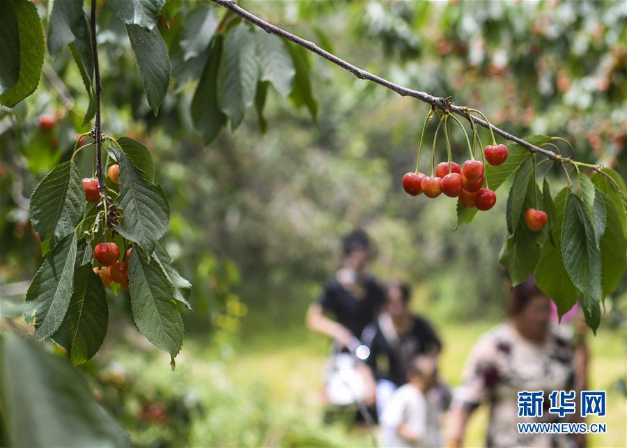 时至5月下旬,塔克拉玛干沙漠边缘的新疆莎车县米夏镇数千亩樱桃树硕果累累,吸引游人前来观光采摘。近年来,深度贫困的南疆四地州将特色林果业与旅游业相结合,助力百姓脱贫增收。 新华社记者 王菲 摄