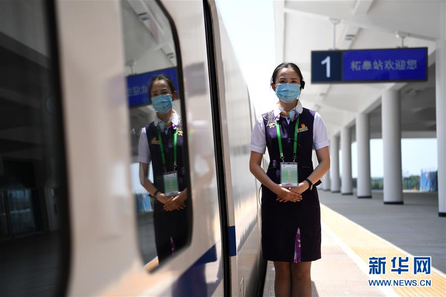 5月27日,试运行检查确认列车乘务人员在商合杭高铁柘皋站。新华社记者 刘军喜 摄