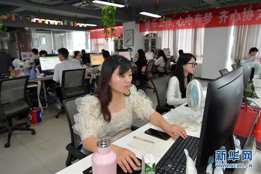 在江西省南昌市青山湖区一家电商企业,销售人员线上对接客户(5月15日摄)。 今年以来,江西省南昌市青山湖区引进企业,打造以“电商+直播”为新业态的产业集群,主播们根据产品特色和平台需求,推介互动,带动了电商产业的发展。 新华社记者 彭昭之 摄