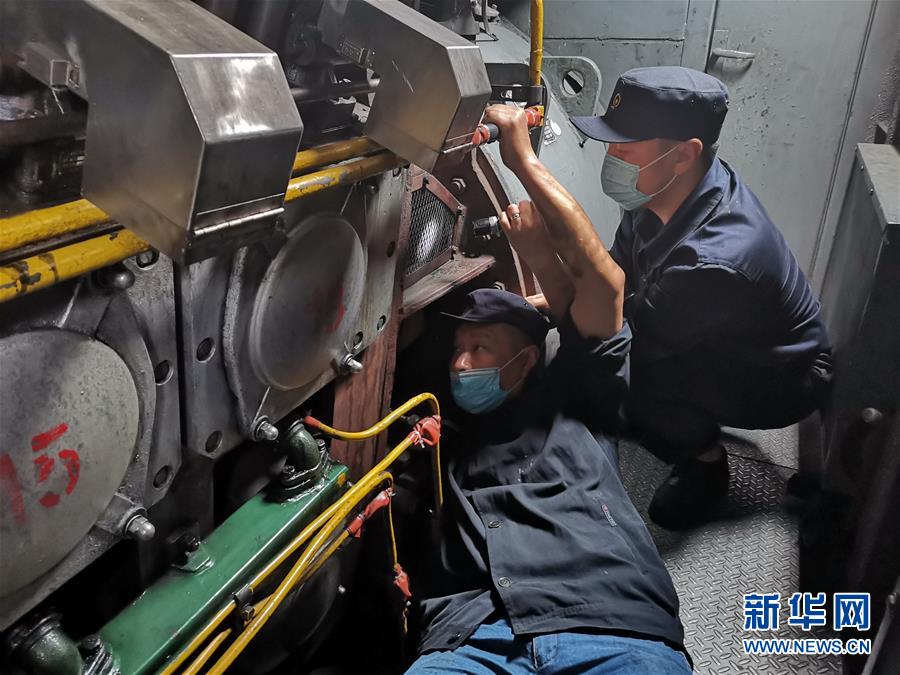 李箭(左)用“躺检”方式对柴油机管路进行检修(7月8日手机拍摄)。 47岁的李箭是中国铁路北京局集团公司天津机务段检修车间柴油机管路组班长。他所在的班组负责天津机务段110多台内燃机车柴油机油管路和水管路的检修工作。作为“机车医生”,他们时常要深入机车“腹腔”,仔细检查柴油机的每根“肠道”。 新华社发(窦世强 摄)