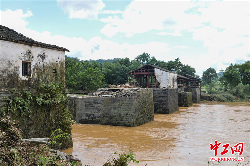 江西婺源八百年彩虹桥部分桥面被洪水损毁