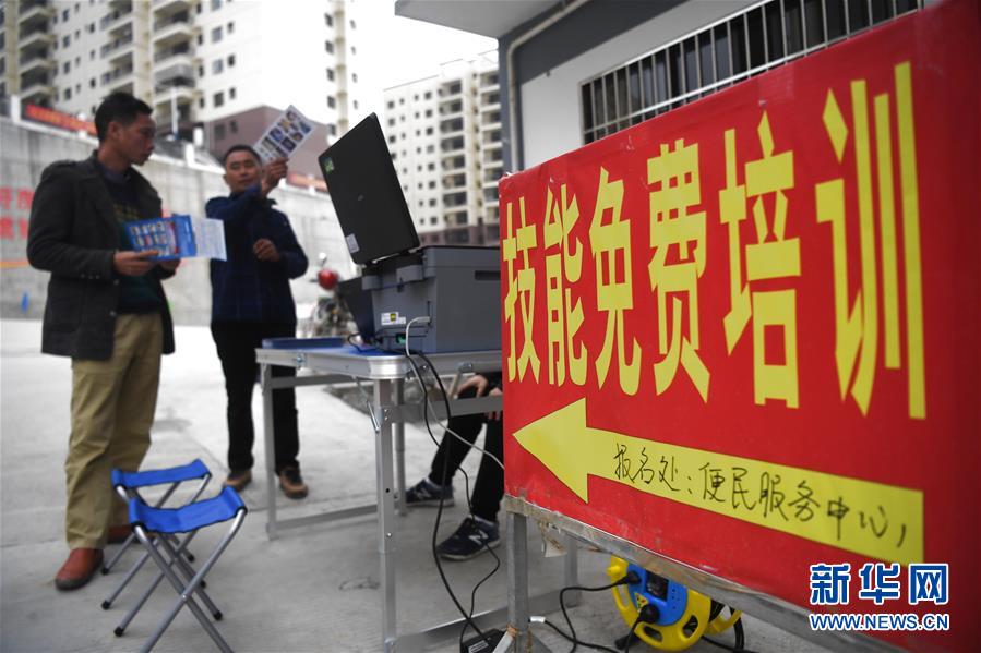 在广西隆林各族自治县,易地搬迁的贫困群众在报名参加技能培训(2019年12月3日摄)。新华社记者 张爱林 摄