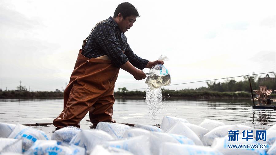 广西钦州市钦南区农民将虾苗放入虾塘,发展海虾养殖(3月13日摄)。新华社记者 张爱林 摄