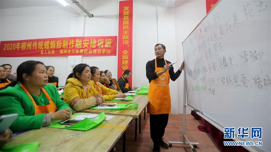 广西融安县群众在接受螺蛳粉制作技能培训(1月8日摄)。新华社记者 张爱林 摄