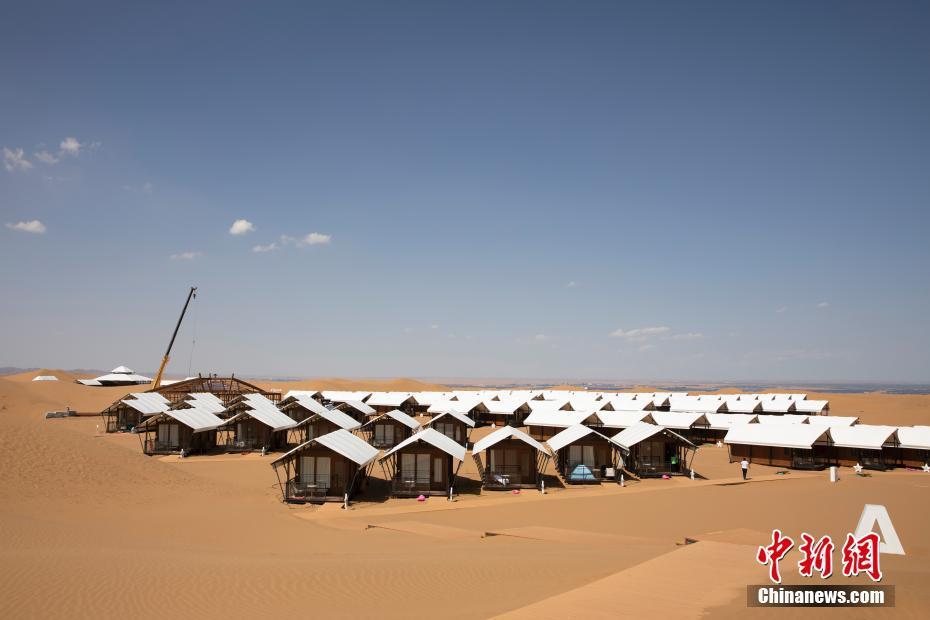 8月13日,80余间帐篷木屋已向游客开放。星星酒店位于宁夏中卫市沙坡头区沙漠腹地。该酒店外形酷似沙海中的一颗颗星星,计划建设客房200间,目前已有80余间帐篷木屋先期对外开放,剩余的客房将于10月1日之前全面对外开放,届时游客可以体验沙景房、星空房、亲子小院等特色客房,并在沙漠中欣赏星空。 中新社记者 杨迪 摄