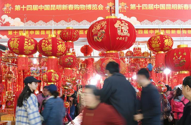春节将至,云南省昆明市官渡区年货市场一片红火,市民置办年货,喜迎鼠年春节。