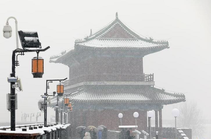当日,石家庄地区普遍降雪,古城正定银装素裹。人们走出家门,赏雪游古城。