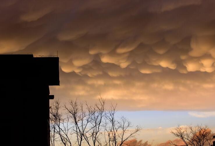 当日傍晚,贵阳上空出现“乳状云”。据了解,乳状云又称“乳状积云”,是指形状与牛乳房相似的云层。