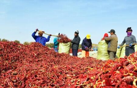 甘肃高台数万吨辣椒红艳戈壁滩装载外销