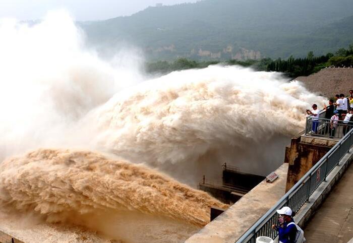 当日,位于河南济源的黄河小浪底水库继续开闸泄洪,清澈的水流和裹挟泥沙的混浊水流分别从明流洞、排沙洞奔腾而出,好似黄白两色的“巨龙”飞腾。