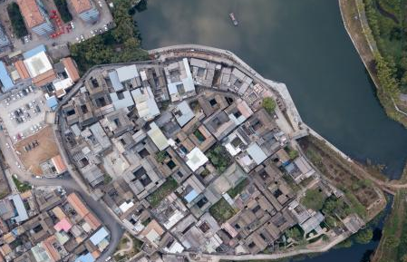 航拍三面环水的百年坚壁古堡“砥洎城”