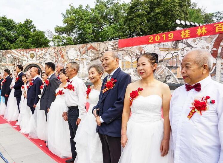 10月20日,广西桂林百对老人携手参加桂林市民政局、桂林市慈善事业会联合主办的金婚银婚鉴真情公益活动。