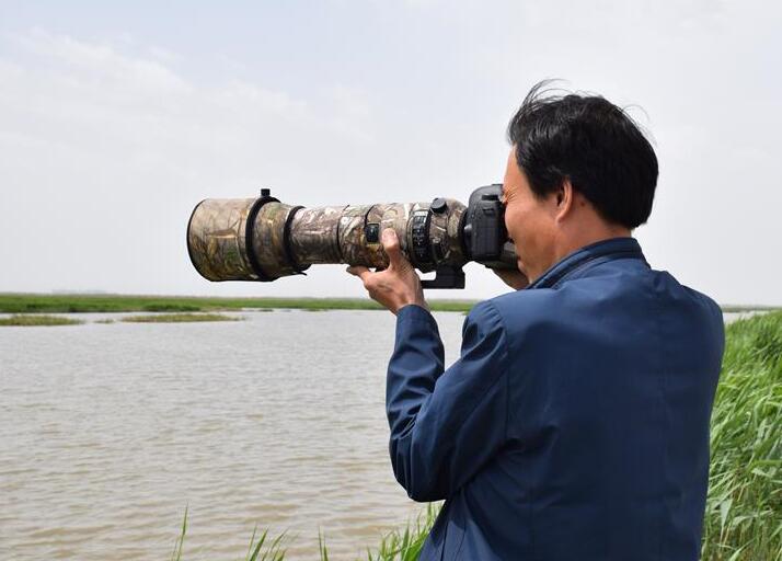 5月18日,天津市七里海湿地自然保护区巡查巡护支队副支队长韩克武在七里海湿地拍摄。