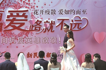 他们脱下“战袍”,穿上西装和礼服,一起拍摄婚纱照,留下属于自己的爱情见证。虽然婚期因疫情而延迟,但花开疫散后,爱的典礼,如约而至。