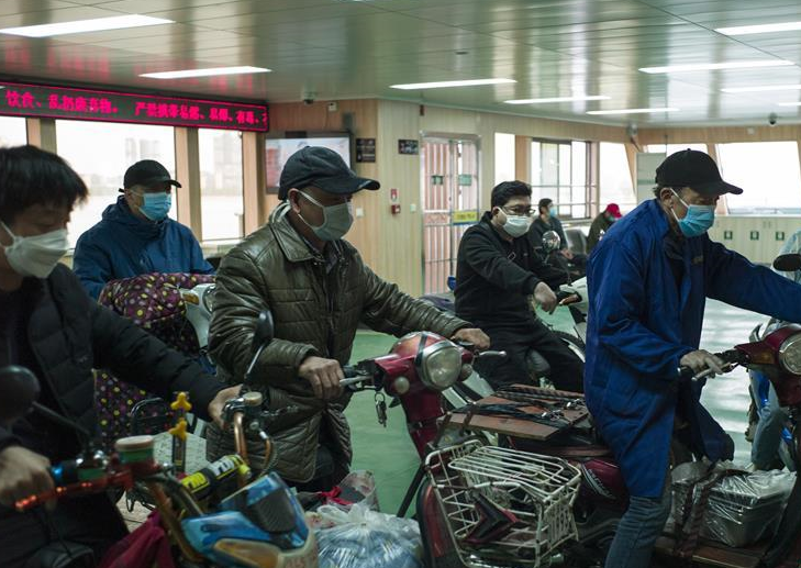 4月8日,乘客乘坐轮渡出行。 4月8日零时起,武汉市解除离汉离鄂通道管控措施。