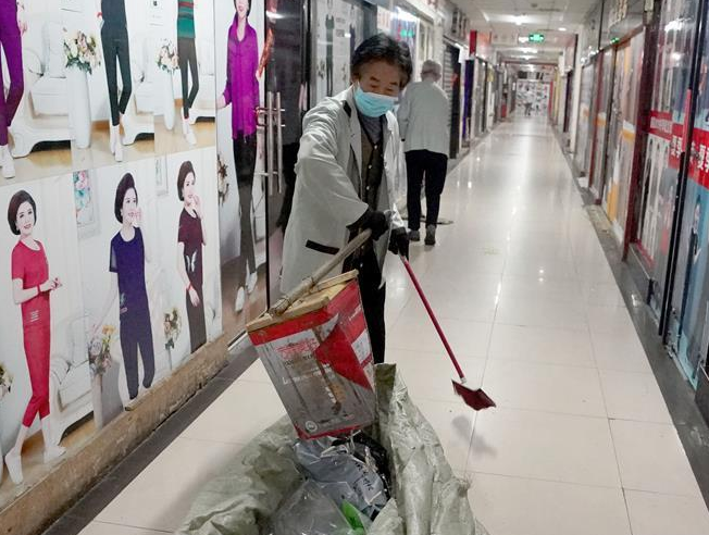27日,位于湖北武汉市汉正街的万商白马商城进行了大规模清洁消杀,为复工复产做准备。