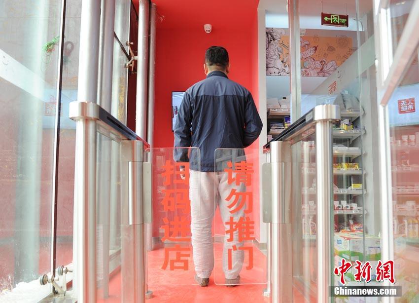 顾客通过手机扫码并通过人脸识别后进出超市。刘栋 摄