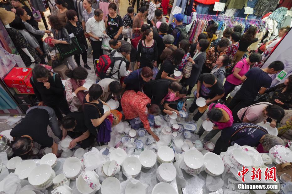 9月28日,北京官园批发市场闭市在即,大量民众在抢购低价商品。随着北京疏解非首都功能工作的推进,官园批发市场将于当晚永久闭市。“官批”于1998年开业至今,已经营20年,成为西城区最后一家闭市的区域性批发市场。自此,西城区区域内,“动批”各市场、“天意”、“万通”、“官批”等市场全部完成疏解。中新社记者 贾天勇 摄