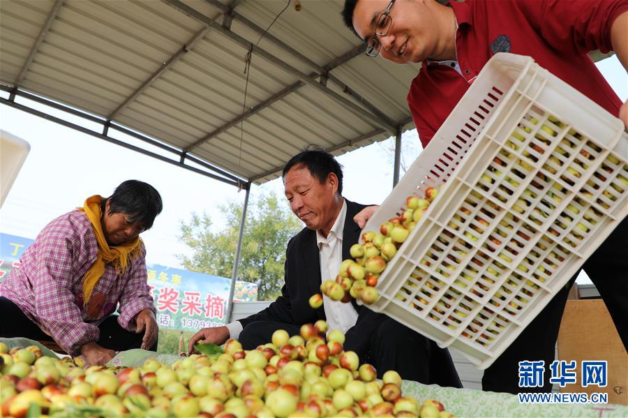 10月8日,游客在滨州市沾化区冬枣园里采摘冬枣。 金秋十月,山东省滨州市沾化区50万亩冬枣进入采摘期,当地枣农抓紧采摘、分拣、包装、销售,呈现一片丰收景象。 新华社发(贾海宁 摄)