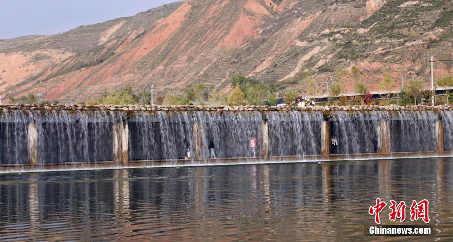 10月10日,西宁北川河湿地公园内的瀑布长廊。据了解,北川河湿地公园是西宁市面积最大的湿地公园,总面积约173.5公顷,整个水域面积约为95公顷,绿化面积约为60公顷,水景和绿景占全园面积的70%以上,拥有六个湖,五大园区。该湿地公园的的建成对西宁这样一座高寒高海拔干旱地区城市来说,有利于气候环境的改善。中新社记者 马铭言 摄