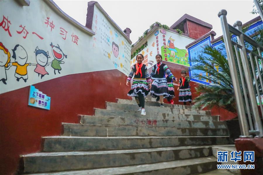 10月23日,几名学生在贵州省织金县官寨乡小妥倮平安希望小学使用厕所后离开,平安希望小学是10所项目学校之一。 新华社记者 张玉薇 摄