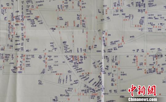 手绘地图标出了详细的建筑、每个小区内部的道路、每栋居民楼的楼号等。 范丽芳 摄