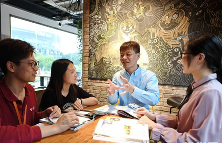 10月24日,高永起、葛英芬在和学生们一起参加课外活动。