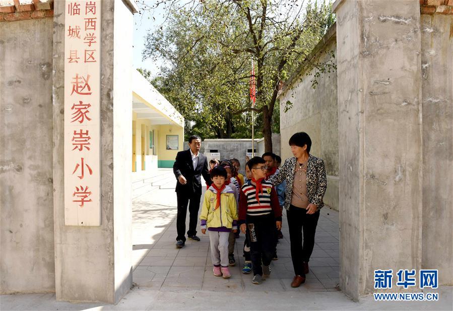 10月24日,高永起、葛英芬夫妻俩送孩子们放学。 新华社记者 朱旭东 摄