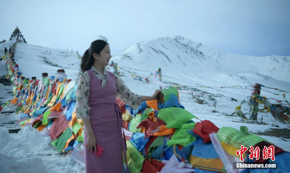 11月20日,四川康定,雪后的折多山美景吸引了拉萨女孩杨莹。中新社记者 刘忠俊 摄
