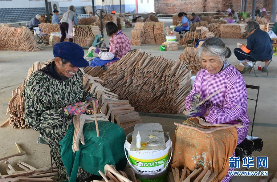 广西南宁市武鸣区太平镇庆乐村和有关企业合作,采取“企业+扶贫车间+农户”的模式,在村里办起“扶贫车间”,主要负责衣架生产中的手工修补环节。工资以计件报酬的方式发放,村民可以灵活安排上下班时间,拓宽了他们增收的渠道。 新华社记者 陆波岸 摄