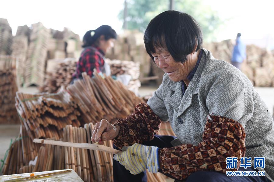 11月25日,在广西南宁市武鸣区太平镇庆乐村扶贫车间,两名村民在修补衣架。新华社记者 陆波岸 摄
