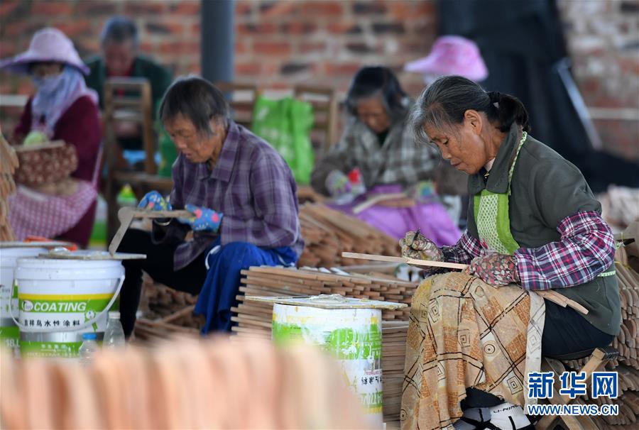 11月25日,在广西南宁市武鸣区太平镇庆乐村扶贫车间,几名村民在修补衣架。新华社记者 陆波岸 摄