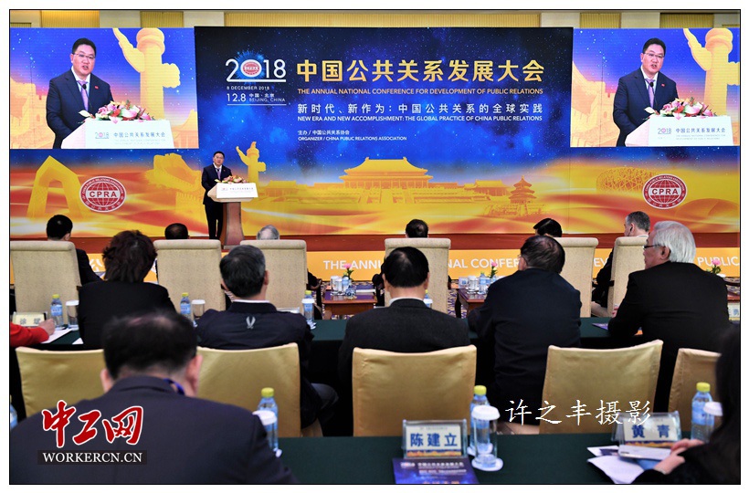 “四十春秋万象更新,中华绮梦再创辉煌。”2018年12月8日,在中国改革开放四十周年之际,中国公共关系协会主办的“2018中国公共关系发展大会”在北京钓鱼台国宾馆举行。本届大会的主题是:“新时代、新作为:中国公共关系的全球实践。”旨在总结、探讨我国公共关系在国家形象对外传播、“文化走出去”、全媒体传播格局构建等全球范围的创新实践等议题,展现公共关系在新时代中国特色社会主义强国建设中的作用和独特魅力,不断提升国家公共关系全球实践能力水平,促进新时代中国特色社会主义公共关系建设。