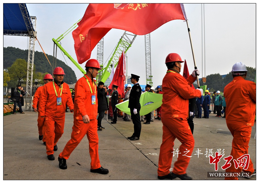12月12日,“中联重科杯”第五届全国吊装职业技能竞赛在湖南长沙中联重科麓谷工业园举行。来自全国六大工业建设行业和民营企业的23支参赛队使用中联重科提供的260吨ZCC2600履带起重机,争夺国内吊装界的最高荣誉。图为精彩纷呈的竞技比赛。工人日报-中工网记者许之丰摄影报道