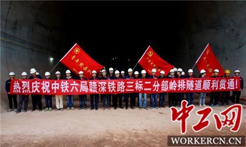 中铁六局集团承担的赣深铁路3标段,正线全长约40公里,管线跨越龙川及和平两县,主要包括桥梁47座,隧道21座。此次贯通的岭排隧道位于广东省和平县林寨镇境内,全长396.4米,最大埋深约40米,自2018年5月17日开工建设。