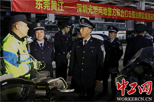 中工网讯(记者刘友婷 通讯员宋卓远)12月11日晚,深圳、东莞两地警方举行了联合打击整治跨区域违法犯罪专项行动启动仪式,并分别在两地边界重点区域开展第一次联合整治行动。深圳光明区副区长、公安分局局长周金堂担任行动总指挥,统筹指挥调度整治行动。据了解,深圳市光明区与东莞市黄江镇交界处,是两市跨区域违法犯罪分子流窜的通道之一。为进一步加强对深莞边界治安重点区域的整治,按照上级工作要求,深圳市公安局光明分局主动联合东莞市公安局黄江分局开展打击整治跨区域违法犯罪行动。