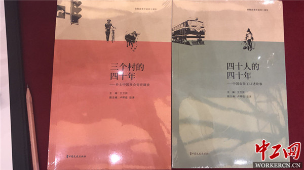 研讨会上,国务院参事室社会调查中心发布了中国社会变迁课题成果《三个村的四十年》《四十人的四十年》两部书。