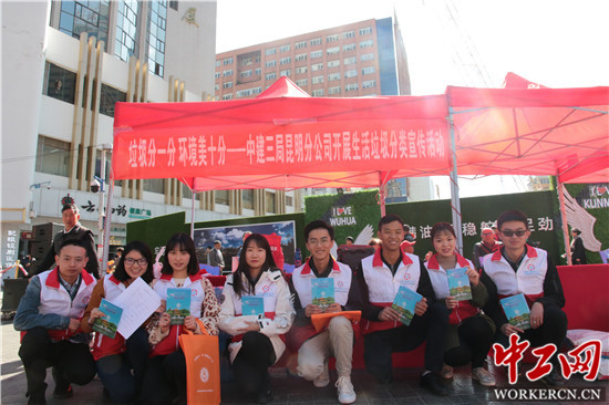 1月19日,在昆明市城乡生活垃圾分类领导办公室的号召下,中建三局昆明分公司11名“红棉”志愿者来到昆明市南屏街开展“垃圾分一分 环境美十分”垃圾分类宣传志愿活动,给市民发送环保袋、垃圾分类知识手册,现场讲解垃圾分类常识等,同时引导市民参加现场垃圾投放模拟、知识问答等互动活动,加深市民对垃圾分类的认识,并呼吁市民争做“环保卫士”,生活垃圾分类从小家做起。