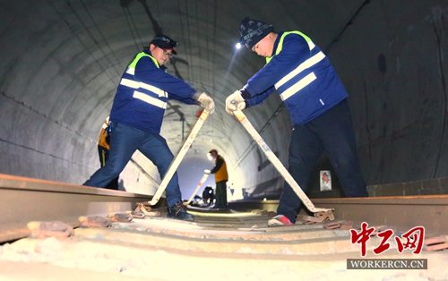 安全监督员龚靖拿出扫码仪对工机具逐一扫描清点。“嘀,嘀……”扫码仪发出清脆的声音,像是认可了这个90后大学生的工作态度。“工机具清点很重要,稍不留神,就会遗漏在线路,威胁动车运行安全。”龚靖说。 按照分工,班长张浩带着7名职工拆除1410个旧弹条,人均200个。大伙儿铆足劲干,拆除进度很快,把紧固组的职工甩了一大截。作业中,几个年轻人索性脱去棉衣,搞起了比赛。弹条紧固组在班长赵峰的带领下,不甘示弱地抢时间、赶紧度。尽管天气异常寒冷,但他们的额头上也渗出了密密的汗珠。
