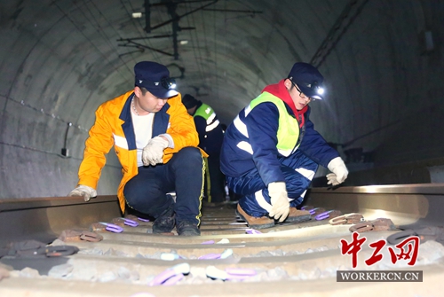 凌晨0点,“呜……”随着一声长鸣,轨道车载着中国铁路武汉局集团有限公司麻城工务段麻城北维修工区的16名高铁养路人驶向夜的深处,直奔碧绿河隧道而去。今夜,他们要更换碧绿河隧道里的1410个弹条。 碧绿河隧道,位于合武高铁677公里处,全长500米。穿过碧绿河隧道,便是长达13.94公里的大别山隧道。合武高铁,2009年建成通车,东起安徽合肥,西至湖北武汉,有桥梁171座、隧道37处,有“桥隧博物馆”之称。