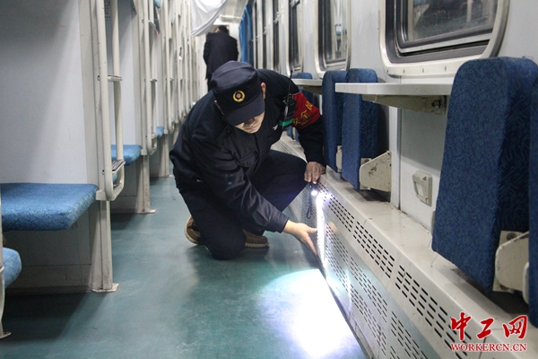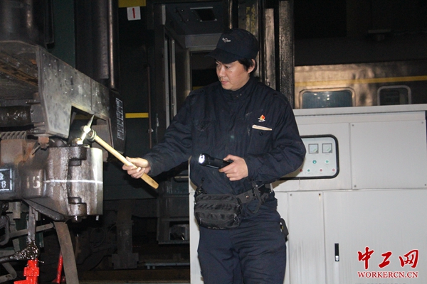 工长李峰说:“每多敲一遍,多看一圈,心里就多踏实一点。”汉口运用车间主任刘庆也上上下下的在列车上巡视着,不停的叮嘱着作业注意安全,卡控好每一处细节关。